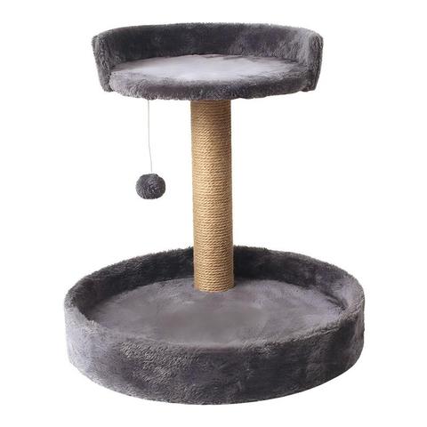 サイザル引っ掻くポスト付き2レベル猫の木二重ぬいぐるみ羽毛おもちゃ屋内猫用安定したウッドベース