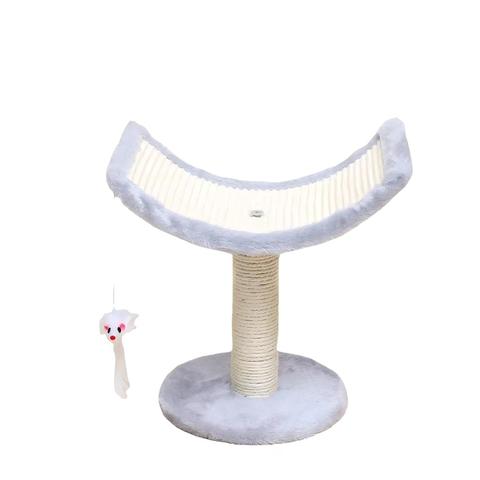 モダンなふわふわの月型猫の木サイザルスクラッチポスト安定したウッドベース吊り下げぬいぐるみ遊び子猫用リラクゼーションおもちゃ